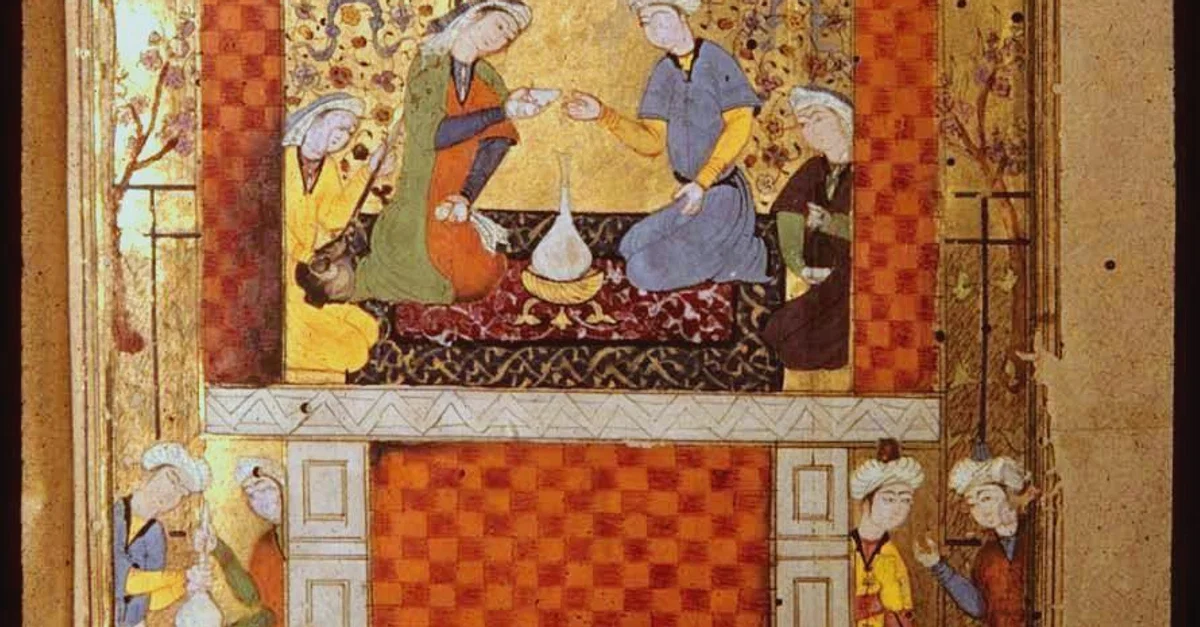 Khosrow II (r. 590-628) and his favorite wife Shireen, f. 66v, 1568, possibly Golconda (Khuda Bakhsh Library, Patna, No. 499.