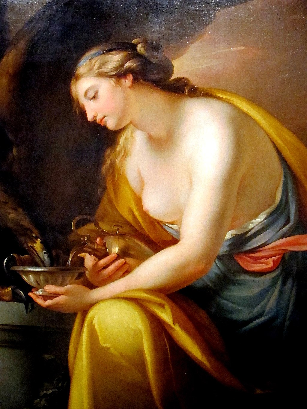 Hebe Giving Drink to the Eagle of Jupiter, oil on canvas by Gavin Hamilton, 1767. Height: 127 cm (50 in); width: 94 cm (37 in).