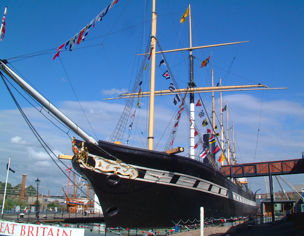 The restored steamship SS Great Britain in Bristol, England. It was designed by Isambard Kingdom Brunel (1806-1859). The ship sailed on its maiden voyage from Liverpool to New York in May 1845.