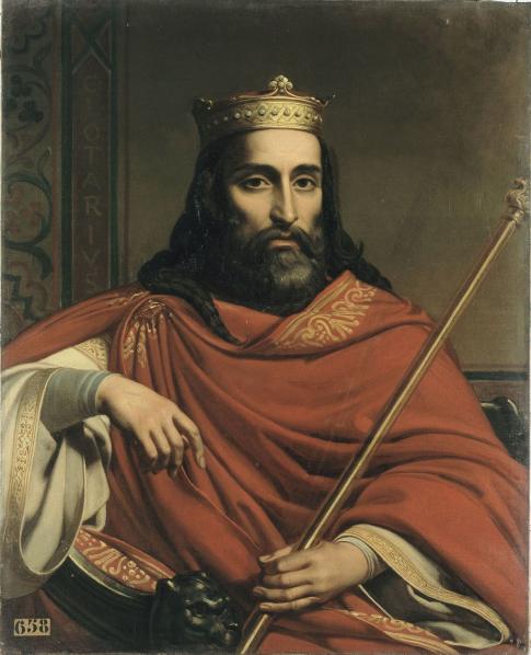 A 19th-century depiction of Chlothar I, King of the Franks (r. 511-561), a son of Clovis I (r. 481-511), oil on canvas by Jean Louis Bezard, commissioned by Louis-Philippe, King of the French in 1838 as part of a series on the portraits of Kings of France.