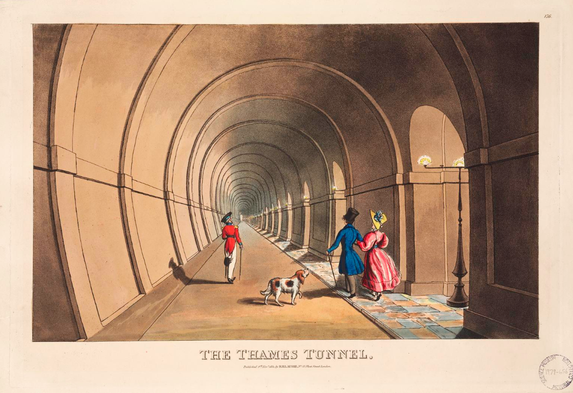 An 1830 coloured illustration by R.H. Laurie of the Thames Tunnel in London. Designed by Marc Isambard Brunel, the tunnel was completed in 1843. (Science Museum, London)