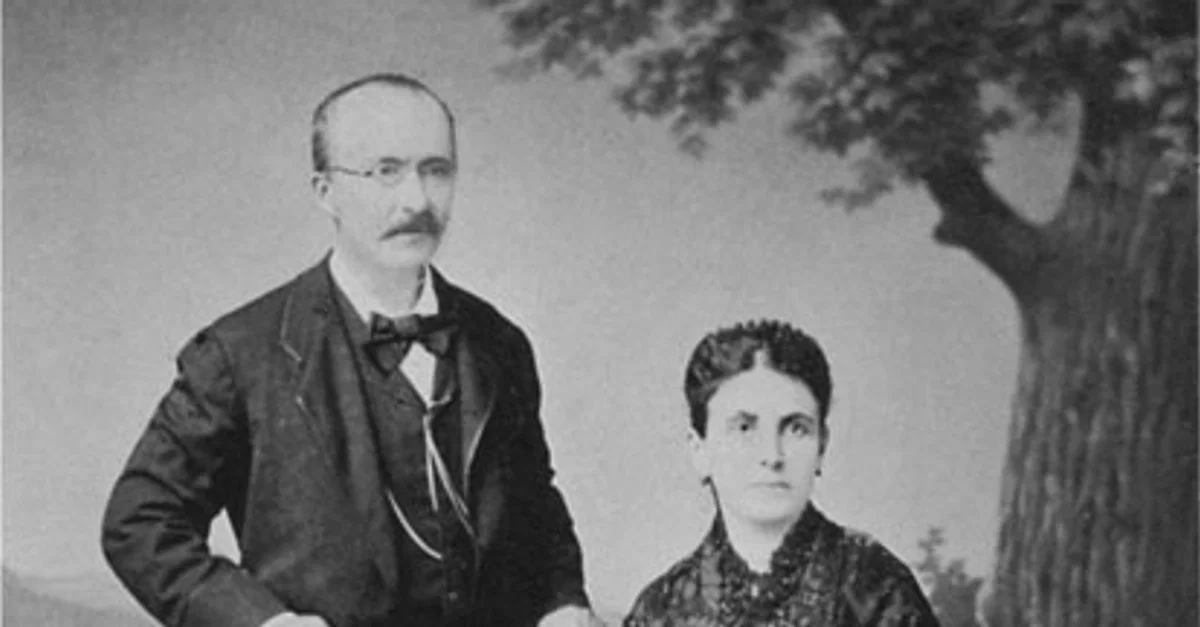 German archaeologist Heinrich Schliemann (1822-1890) and his second wife Sophia Schliemann (1852-1930) during a trip to Germany in 1883.