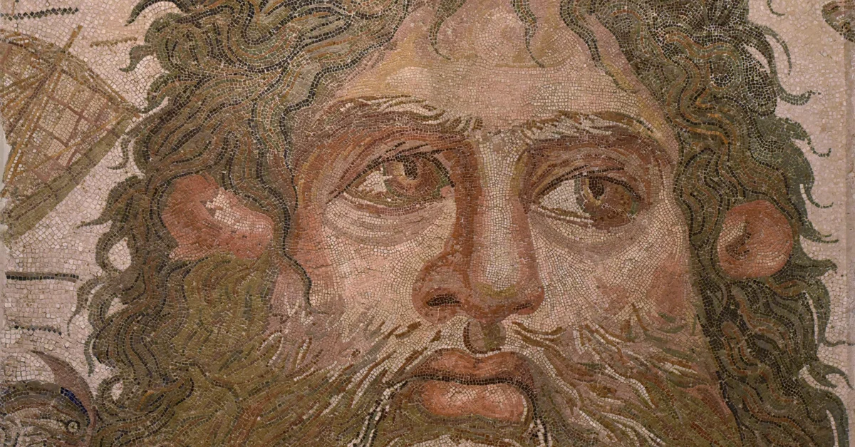 Head of Oceanus, detail of a mosaic from Baths of Themetra near Sousse, beginning of the 3rd century CE.