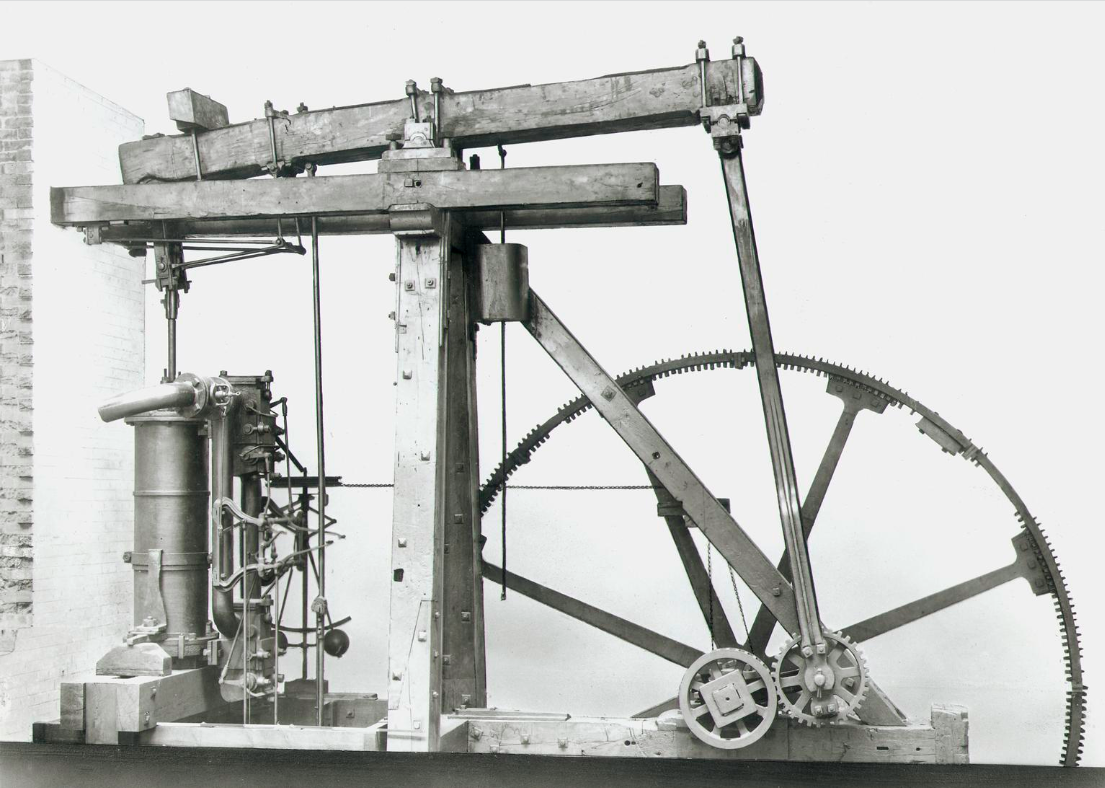 A Watt & Boulton steam engine, one of the key innovations of the Industrial Revolution. Dating to 1788, this example is the oldest original rotative steam engine in the world. Designed and built by James Watt (1736-1819) and Matthew Boulton (1728-1809), the engine used far less fuel than earlier models created by other inventors and so could be used almost anywhere to power factory and agricultural machines of all kinds.