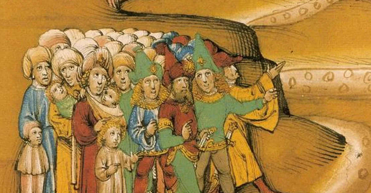 An illustration depicting the arrival of gypsies (Romani) in Bern, modern-day Switzerland. From the late 15th-century chronicle Spiezer Schilling by the Swiss author Diebold Schilling the Elder (c. 1436–1486).