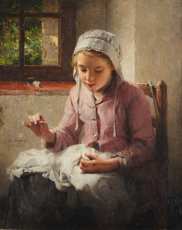 A 19th-century oil painting by Désiré François Laugée titled Sewing. (Museu Nacional de Belas Artes, Rio de Janeiro)