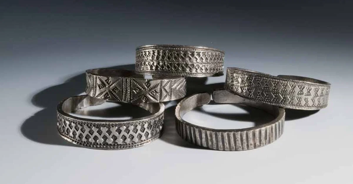 The Red Wharf Bay hoard of silver 'broad-band' arm rings, c. 900-925.