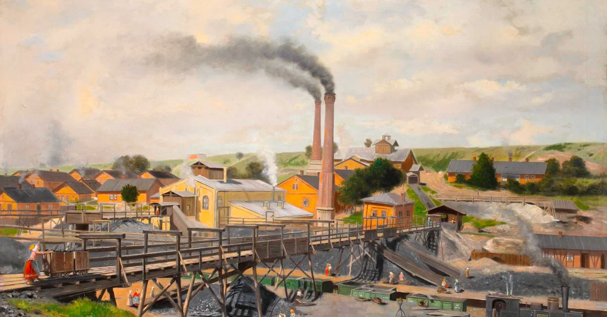 An 1895 oil on canvas of a European industrial landscape by Edmund Kregczy (1855-1916). (Science Museum, London)
