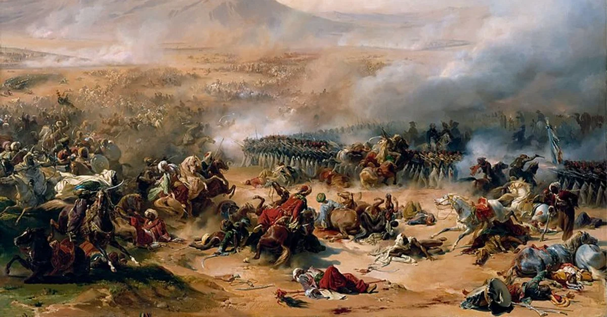 Battle of Mount Tabor between the French and the Ottoman Empire, 16 April 1799 during Napoleon's Campaign in Egypt and Syria; the battle resulted in a French victory, although the French would subsequently lose the Siege of Acre. Painting by Léon Cogniet, c. 1837.
