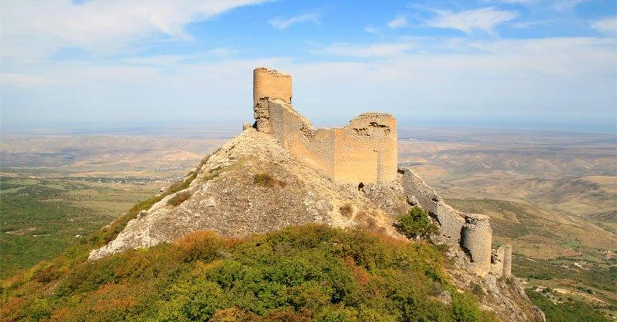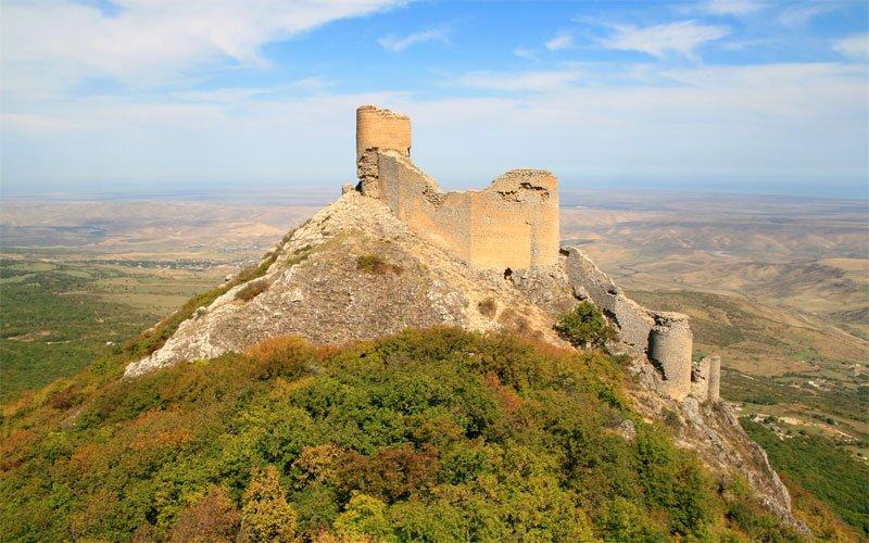 Chirag Gala, a ruined ancient fortress, in the Guba Forest, Azerbaijan. It was constructed during the Sassanian Empire in the 5th century and was still used for defense in the 18th century.