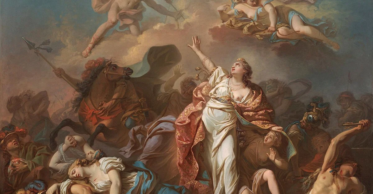 Apollo and Diana attacking the Children of Niobe, oil on canvas by Jacques-Louis David, 1772.