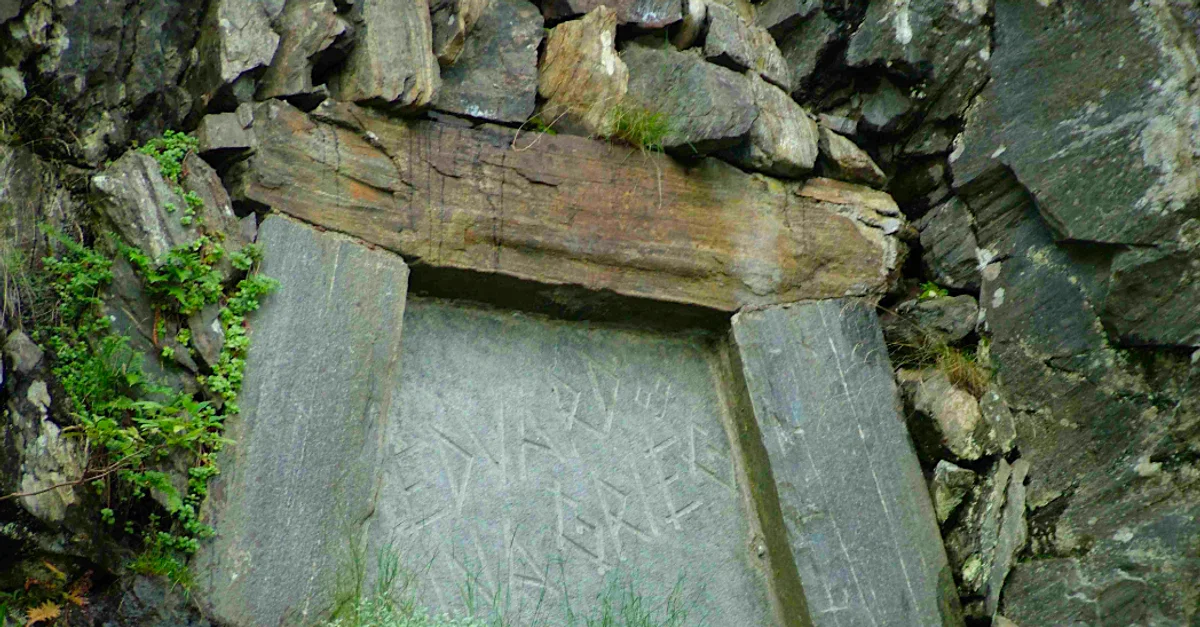 The memorial containing the ashes of the Norwegian composer Edvard Grieg (1843-1907) in the grounds of his home, Troldhaugen, by Lake Nordås, Bergen, Norway.