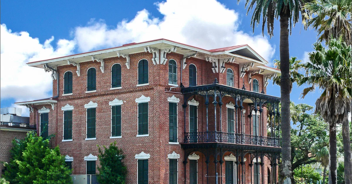 Ashton Villa, Galveston, Texas. Ashton Villas was once owned by Confederate Colonel James Moreau Brown and had briefly served as the headquarters of the Union Army when they held Galveston in 1862.