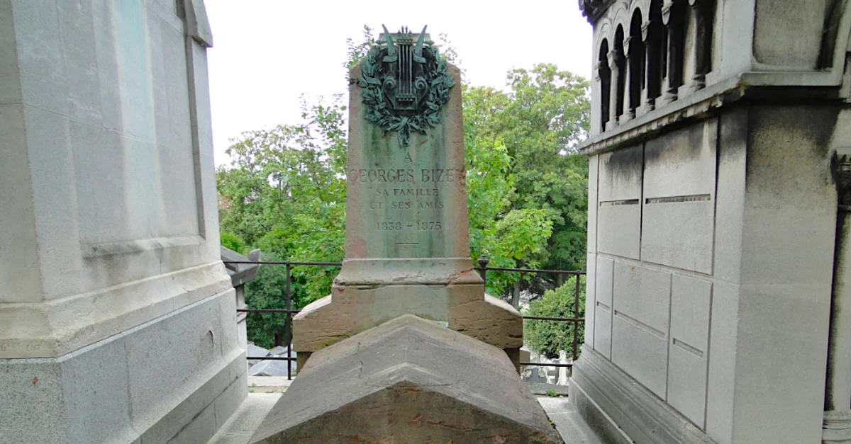 The tomb of the French composer Georges Bizet (1838-1875), Père Lachaise cemetery in Paris.