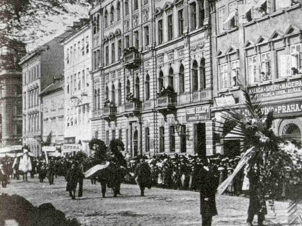 A 1904 photograph of the state funeral procession in Prague of the Czech composer Antonín Dvořák (1841-1904).