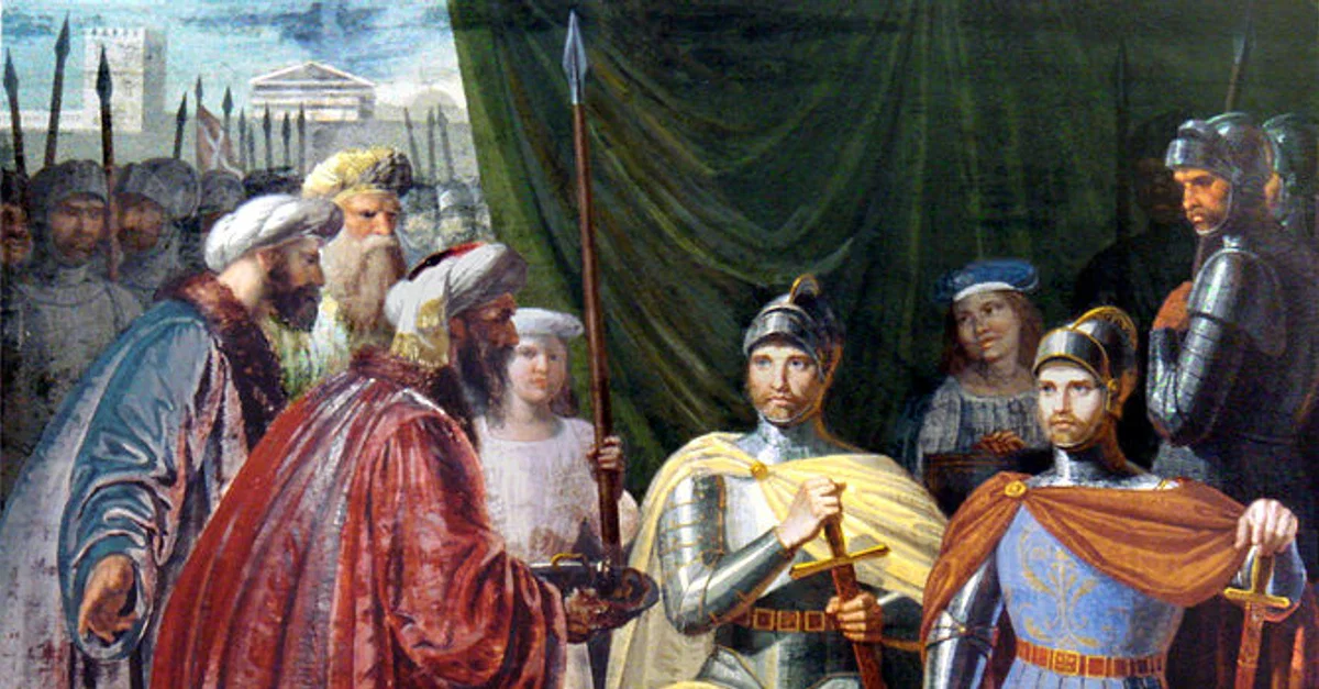 Painting of Robert Guiscard and Roger Bosso receiving the keys to the city of Palermo. The city fell to Norman armies in January 1072, after nearly six months of siege.