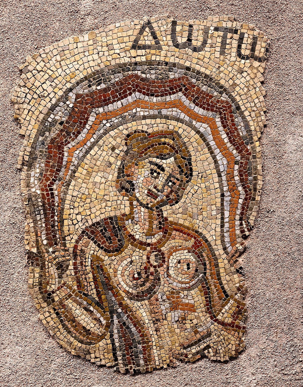 Mosaic fragment: Ino (Dotô), discovered in a Roman villa in Saint-Rustice in 1833, 4th or 5th century, Saint-Raymon Museum, Toulouse.
