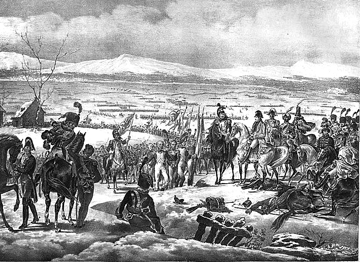 Depiction of the Battle of Pultusk (26 December 1806), fought between French and Russian forces during Napoleon's Polish campaign in the War of the Fourth Coalition (1806-1807). By A. Champion, 19th century.