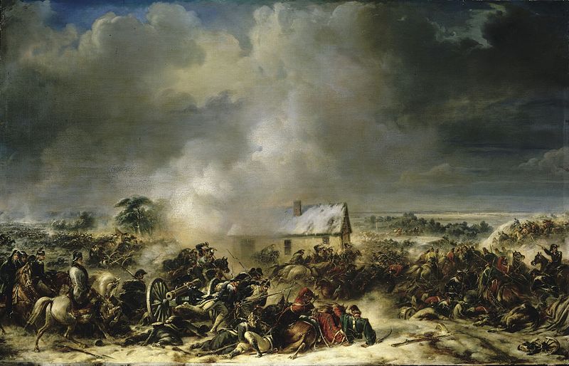 The Battle of Hoff (6 February 1807) was fought between the Russian rearguard and the French Cavalry Reserve, a day before the bloody Battle of Eylau (7-8 February). Painting by Jean-Charles Langlois, before 1849.