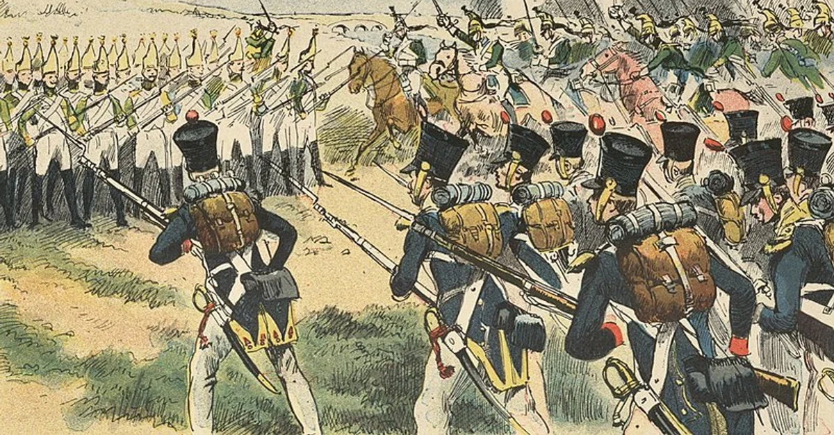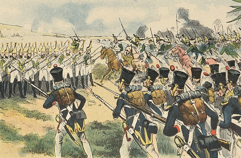 During his assault on the Russian left flank, Marshal Michel Ney's VI Corps is attacked by Russian cavalry during the Battle of Friedland (14 June 1807). Image by Rougeron-Vignerot and Charles Morel, 1892.