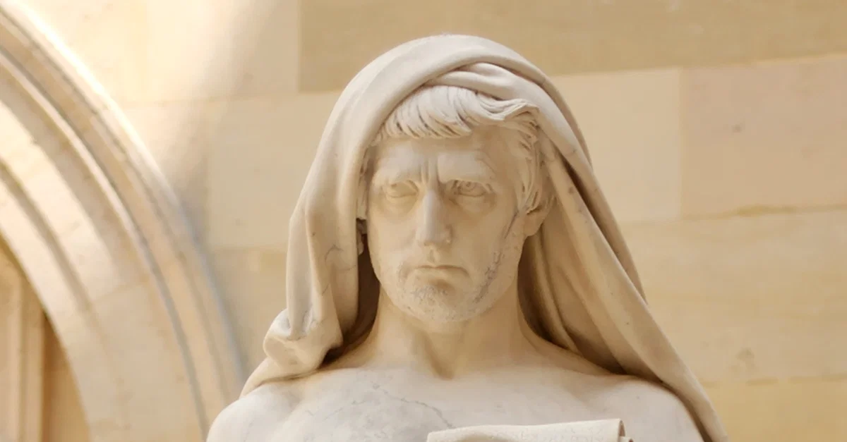 Cato of Utica reading the Phaedo before committing suicide, Carrara marble sculpture by Jean-Baptiste Roman and François Rude, commissioned by King Louis-Philippe in 1832, finished in 1840.