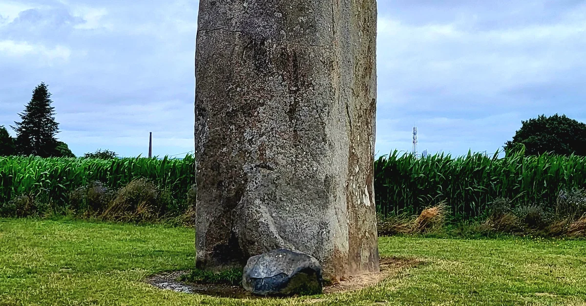 The Champ Dolent menhir in northern Brittany, France has been standing in its place since the beginning of the Neolithic period. Weighing about 120 tons, it was dug from a granite quarry 4 km away. It is 9.30 m high (just over 30 feet) and has a maximum circumference of 8.70 m (c. 26 feet). The local experts think the menhir was erected to commemorate a special event of some sort, not to play a part in a religious rite.
