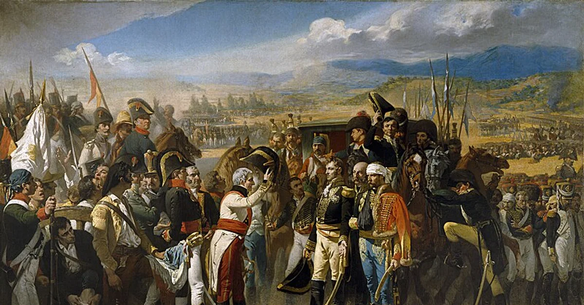 After the Battle of Bailén (16-19 July 1808) an entire French army surrenders to Spanish forces. The largest defeat of a French army since 1794, the battle dispels the myth of invincibility surrounding Napoleonic France and convinces other nations, like Austria, to challenge France. Oil on canvas painting by José Casado del Alisal, 1864.