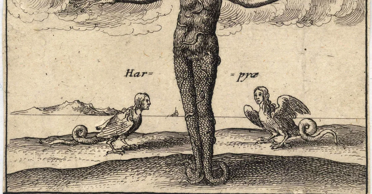 A depiction of Typhon alongside the Harpies by Wenceslas Hollar.