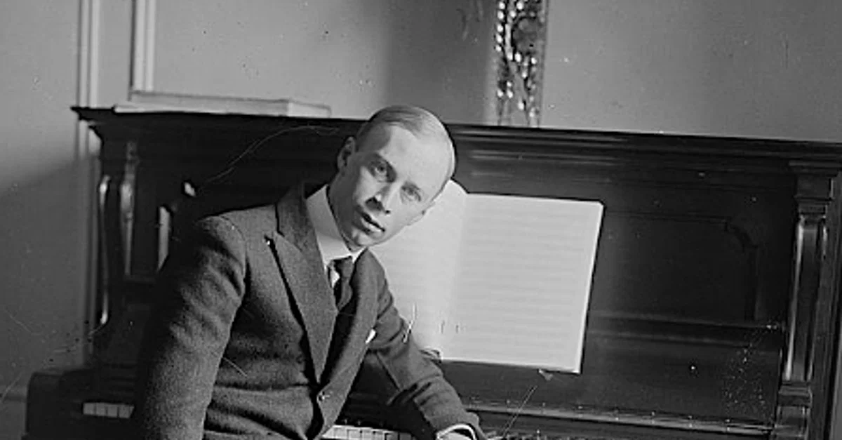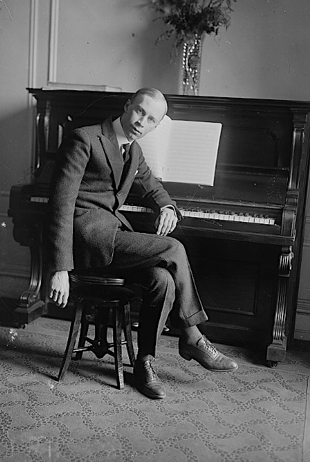 A 1918 photograph of the composer Sergei Prokofiev (1891-1953) sitting at the piano. Bain News Service. (George Grantham Bain Collection, Library of Congress)