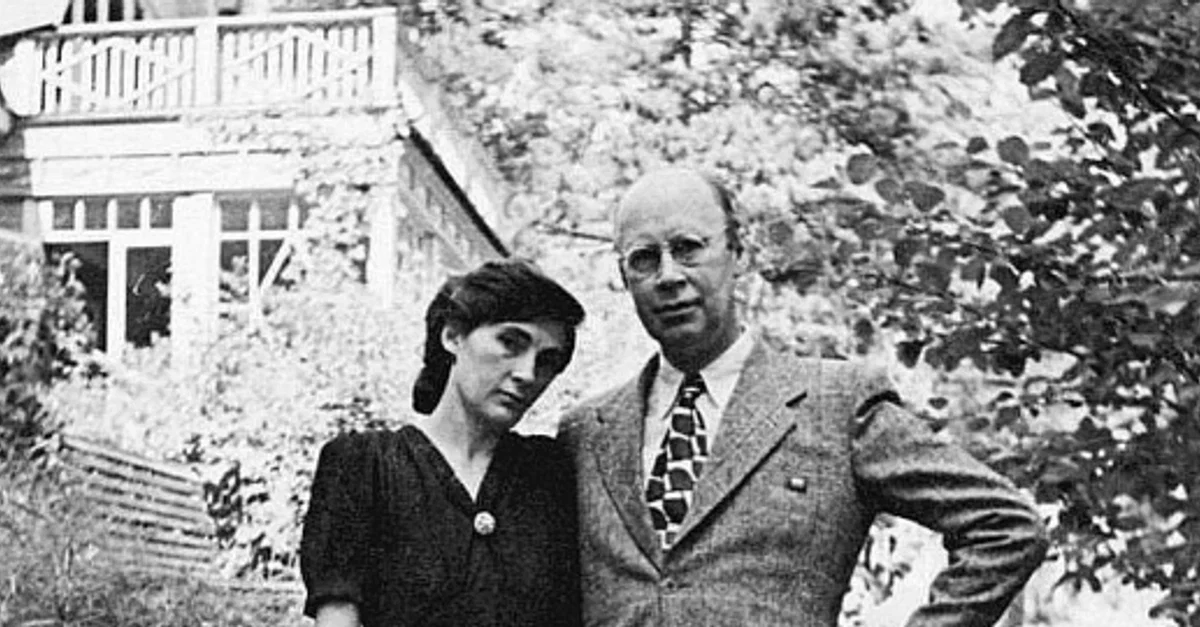 A 1946 photograph of the composer Sergei Prokofiev (1891-1953) and his second wife Mina Mendelson. Taken at their home outside Moscow.