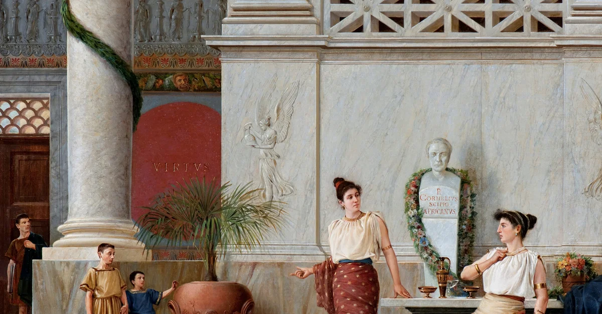 Cornelia, the mother of the Gracchi brothers, oil on canvas by Umberto Ruini, 1892.
