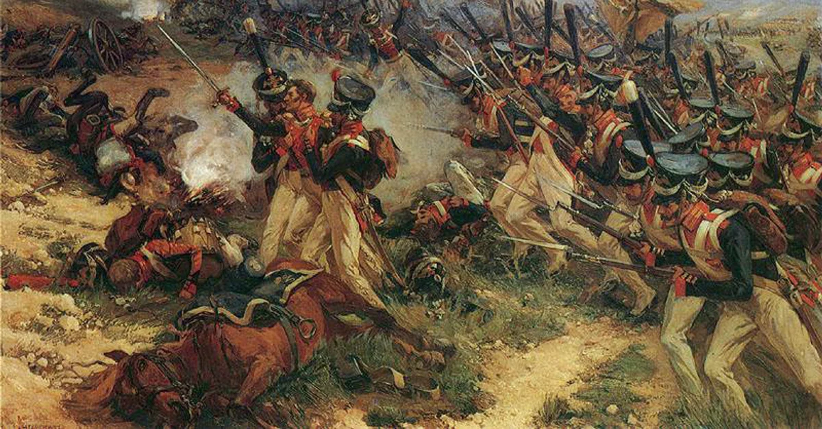 Attack of the Russian Imperial Guard during the Battle of Borodino (7 September 1812). The regiment would lose 973 out of its original 1740 men during the battle. By N. S. Samokish, 1912.