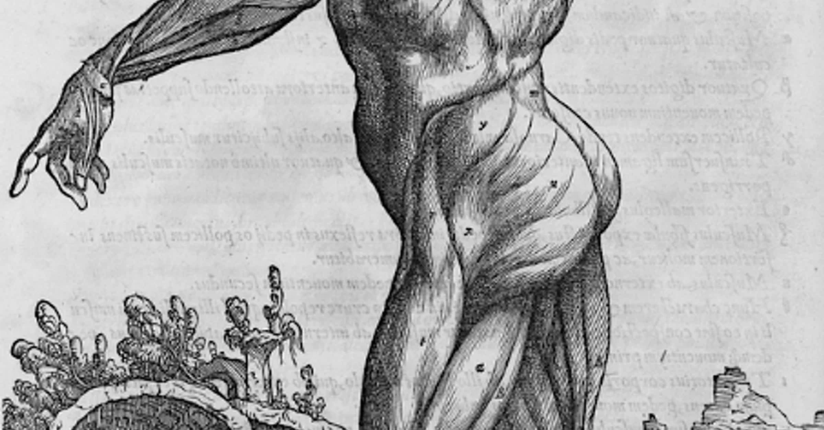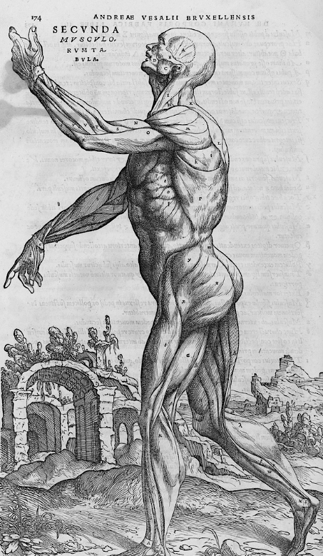 A diagram of the human muscles from Andreas Vesalius' (1514-1564) celebrated book on anatomy, On the Fabric of the Human Body, first published in 1543. (University of Amsterdam Collection)