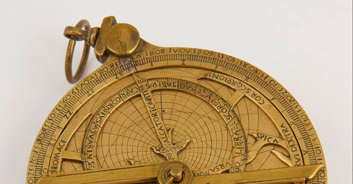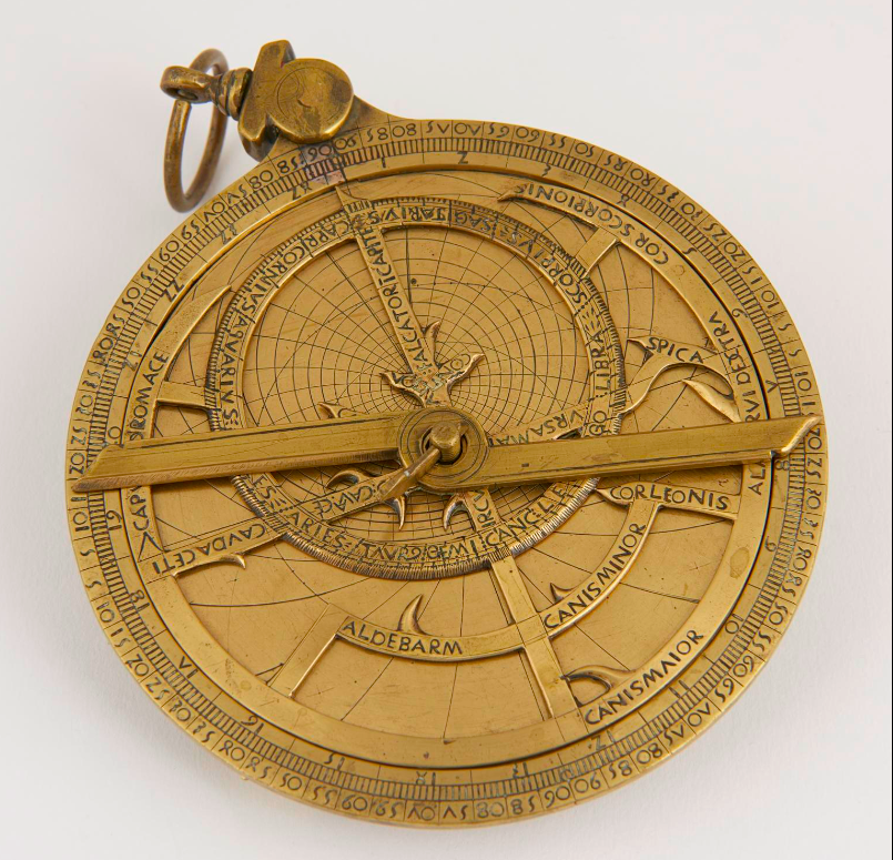 A European brass planispheric astrolabe, made in Italy c. 1500. The astrolabe was a device used to measure the position of stars, time, and as a surveying tool. (Science Museum, London)