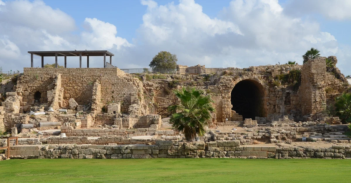 Part of the eastern wharf of the inner harbor, Caesarea Maritima, Israel.