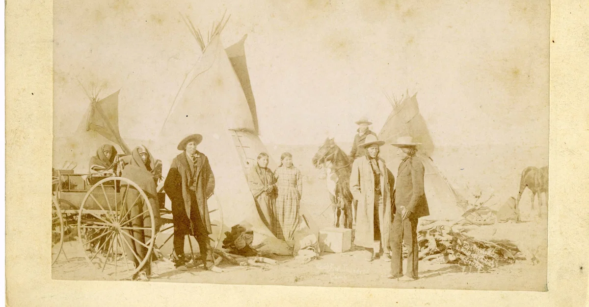 Eight Sioux in Front of Tipis on the Pine Ridge Reservation, photo taken by the Northwestern Photographic Company, circa 1891.