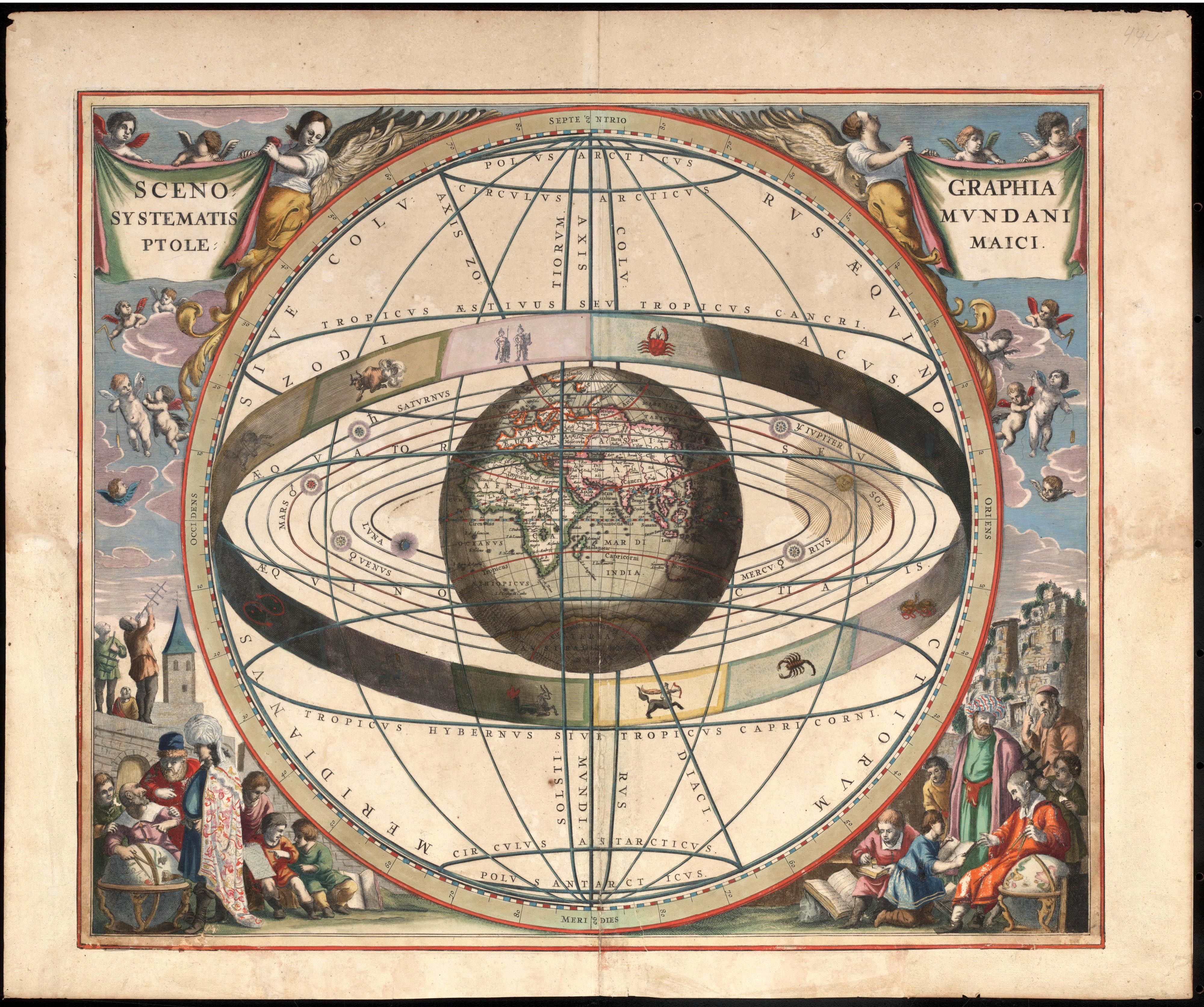 A 17th-century map by Jan van Loon of the cosmos as proposed by the astronomer and geographer Claudius Ptolemy (c. 100 - c. 170 CE).