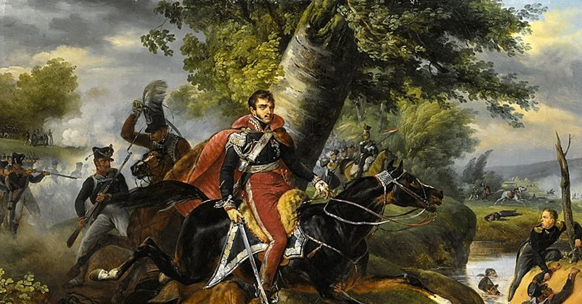 The death of Prince Józef Poniatowski on 19 October 1813, during the Battle of Leipzig. Oil on canvas by Horace Vernet, 1816.