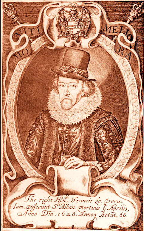 The frontispiece to Sylva sylvarum by Sir Francis Bacon (1561-1626), published posthumously in 1627.