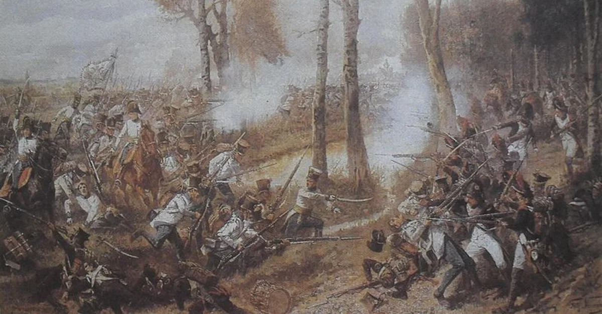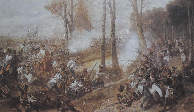 Chrage of the 19th Hungarian Infantry Regiment against French troops, part of the Battle of Leipzig (16-19 October 1813). By Fritz Neumann, 19th century.