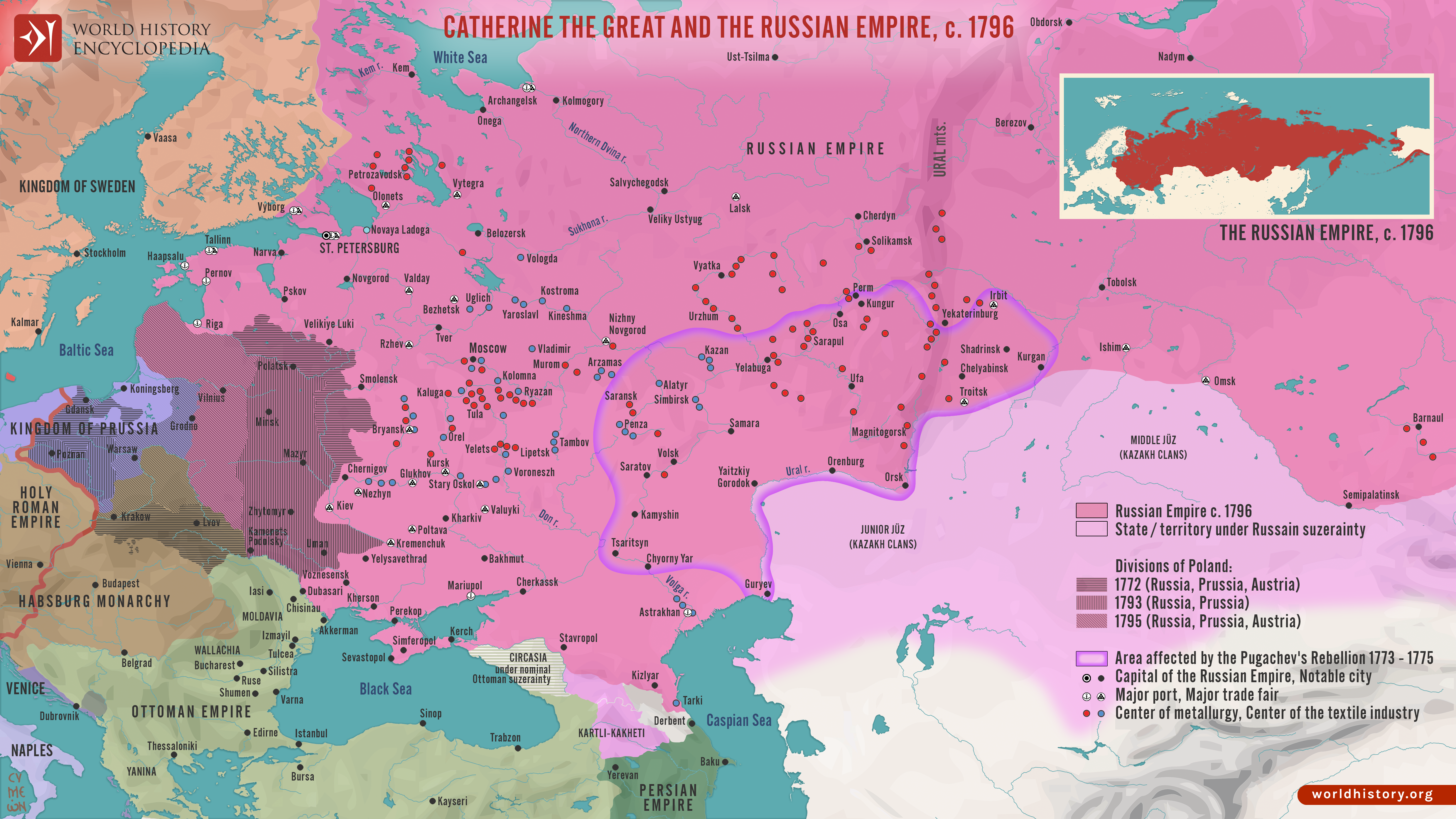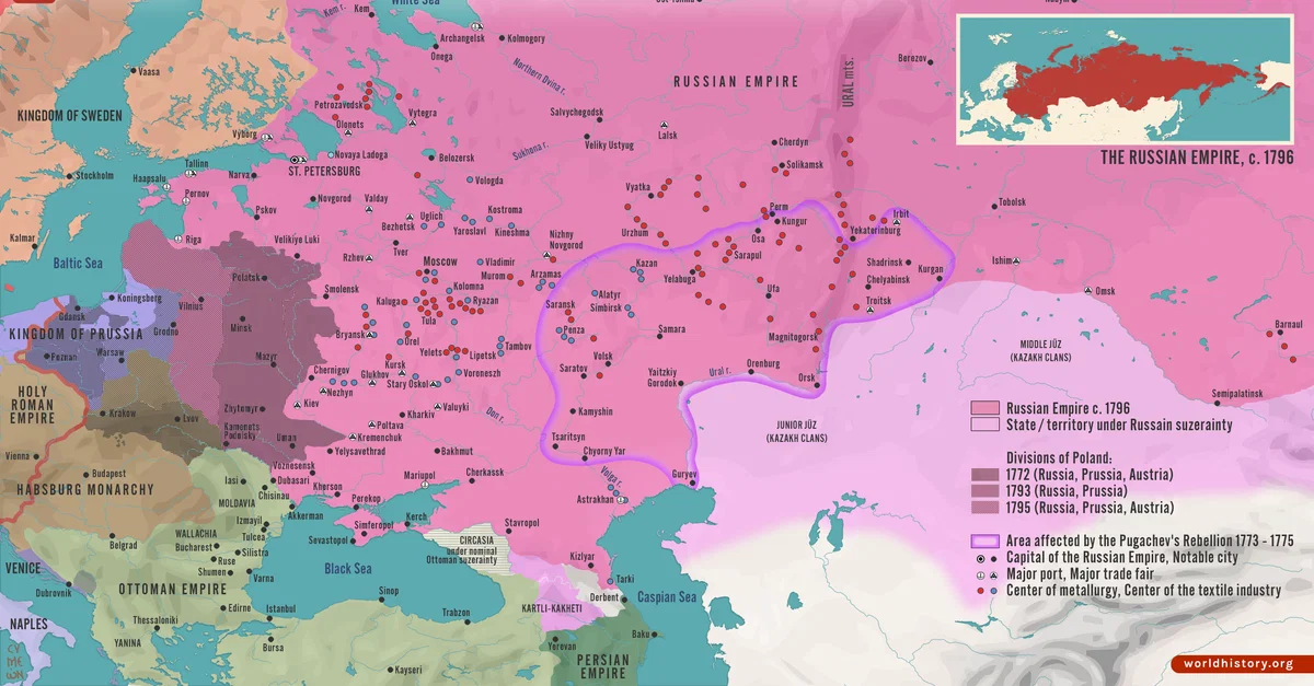 Netchev, S. (2023, September 28). Catherine the Great and the Russian Empire, c. 1796. World History Encyclopedia. https://www.worldhistory.org/image/17952/catherine-the-great-and-the-russian-empire-c-1796/