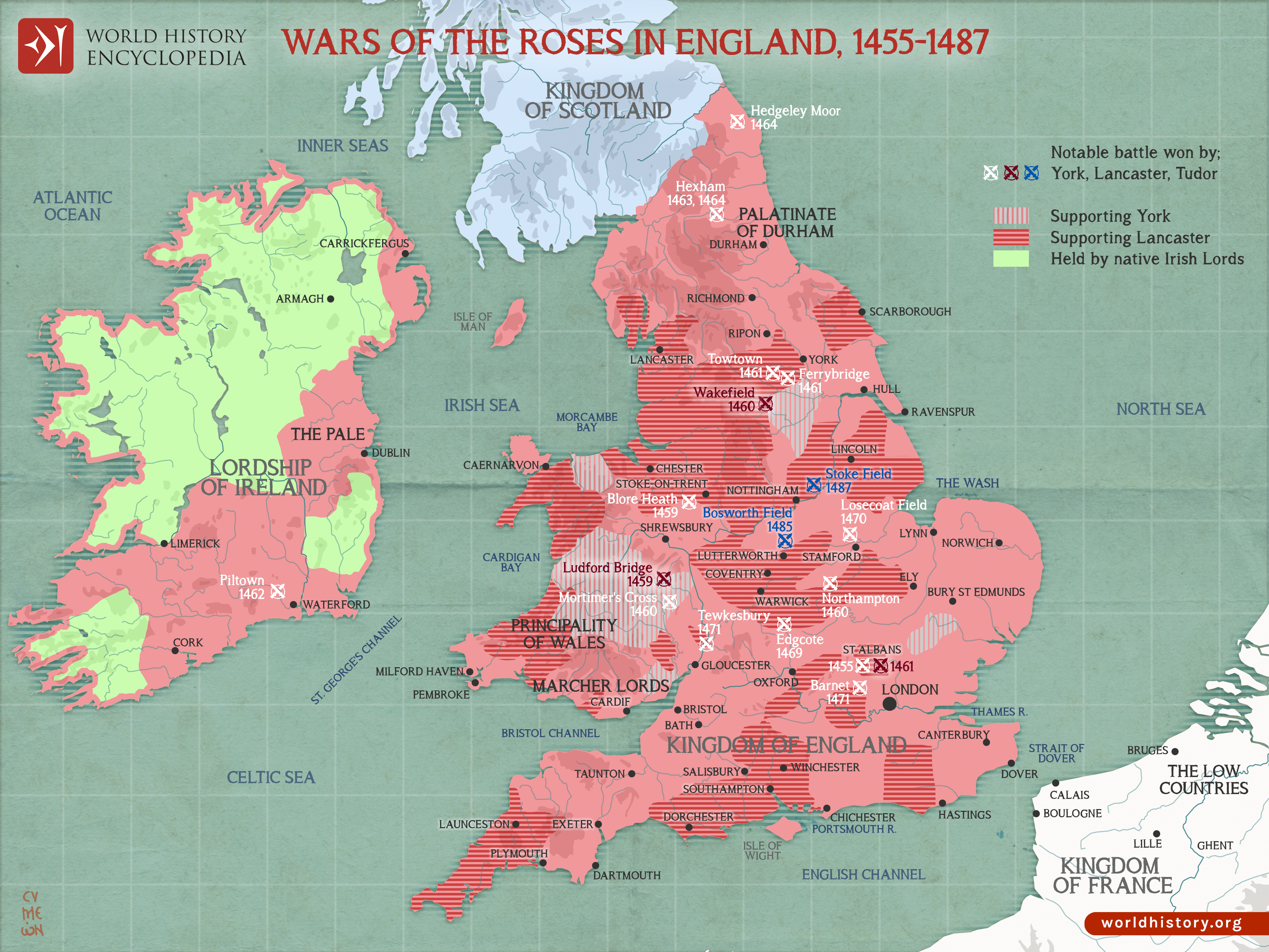 Netchev, Simeon. "Wars of the Roses in England, 1455 - 1487." World History Encyclopedia, 03 Oct 2023, https://www.worldhistory.org/image/17973/wars-of-the-roses-in-england-1455---1487/.