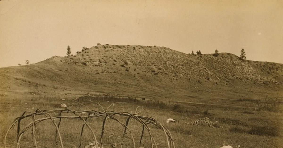 Sweat lodge frame - Cheyenne, photo by Edward S. Curtis, 1910.