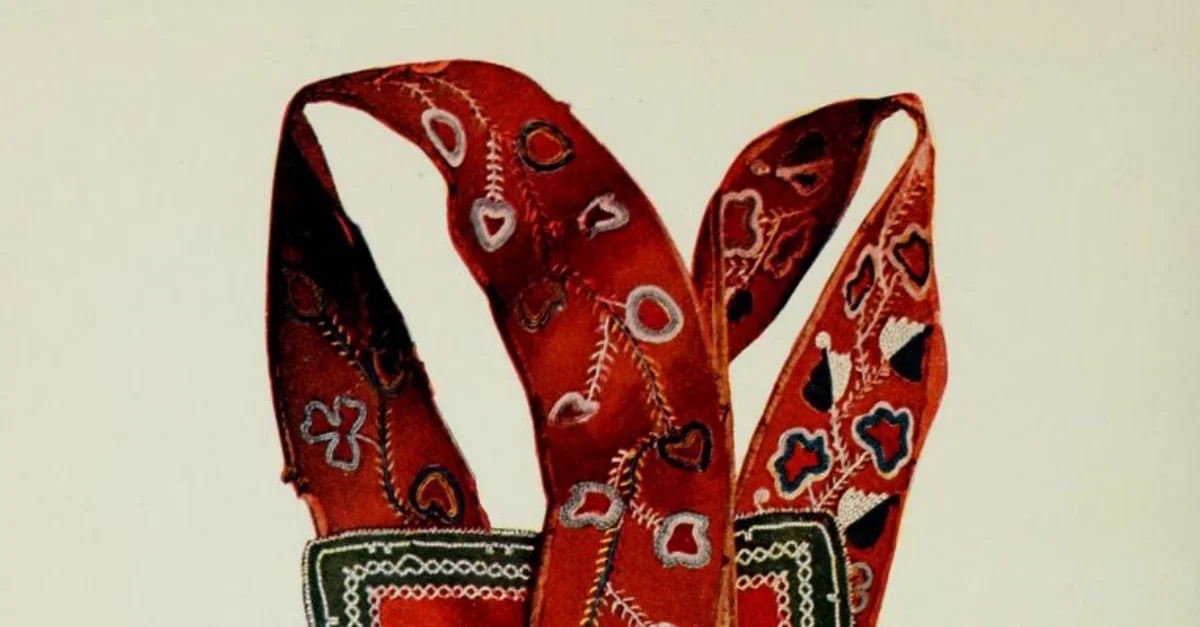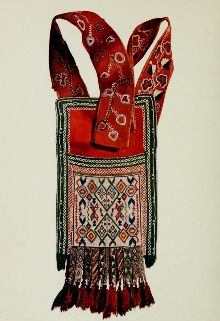 Native American medicine bag, illustration from the Annual Archaeological Report, 1915, by Rowland B. Orr, published in Ontario Sessional Papers, 1916, No. 17-18, 1916.