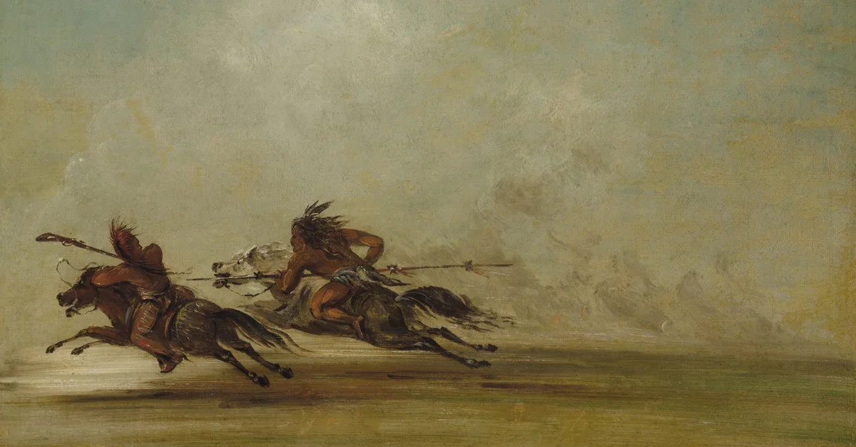 Comanche Warrior Lancing an Osage, at Full Speed, oil on canvas by George Catlin, 1837-1839.