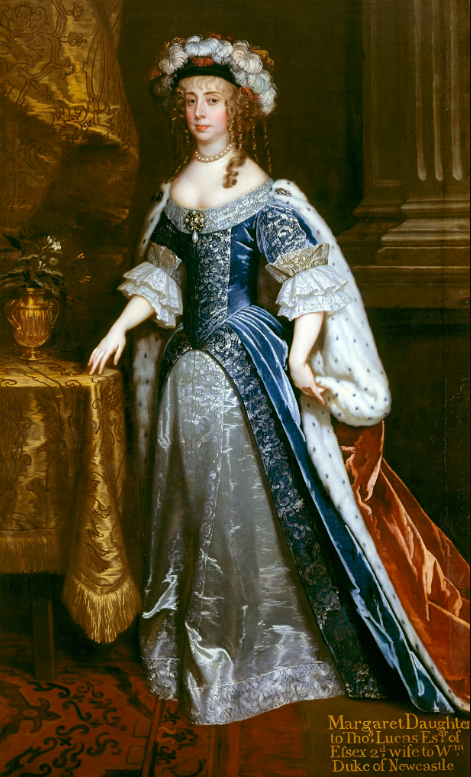 A 1665 oil-on-canvas portrait by Peter Lely of Margaret Cavendish, Duchess of Newcastle (1623-1673). She was one of the very few women to make a mark in the field of natural philosophy during the Scientific Revolution. (Harley Gallery and Foundation, Welbeck Abbey, Nottinghamshire, England)