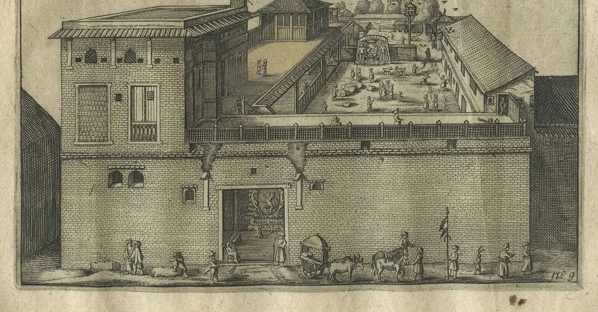 Dutch East India Company's warehouse and living quarters in Surat, India, as seen in April 1629 by Pieter van den Broecke (1585-1640), a Dutch cloth merchant in the service of the VOC.