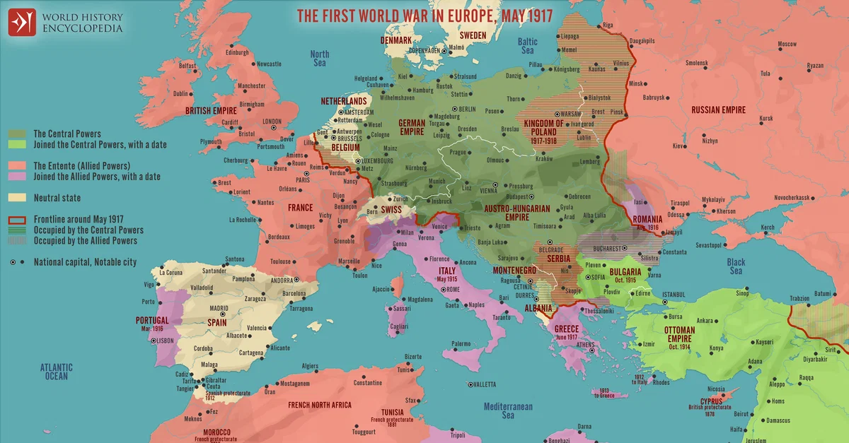 Netchev, S. (2023, November 03). Map of the World War I in Europe, May 1917. World History Encyclopedia. https://www.worldhistory.org/image/18098/map-of-the-world-war-i-in-europe-may-1917/