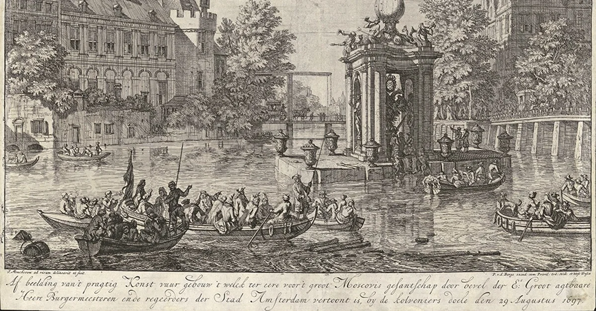 Берж, Художник И. Мушерон, гравер П.. "The Grand Embassy Arrives in Amsterdam." World History Encyclopedia, 09 Nov 2023, https://www.worldhistory.org/image/18129/the-grand-embassy-arrives-in-amsterdam/.