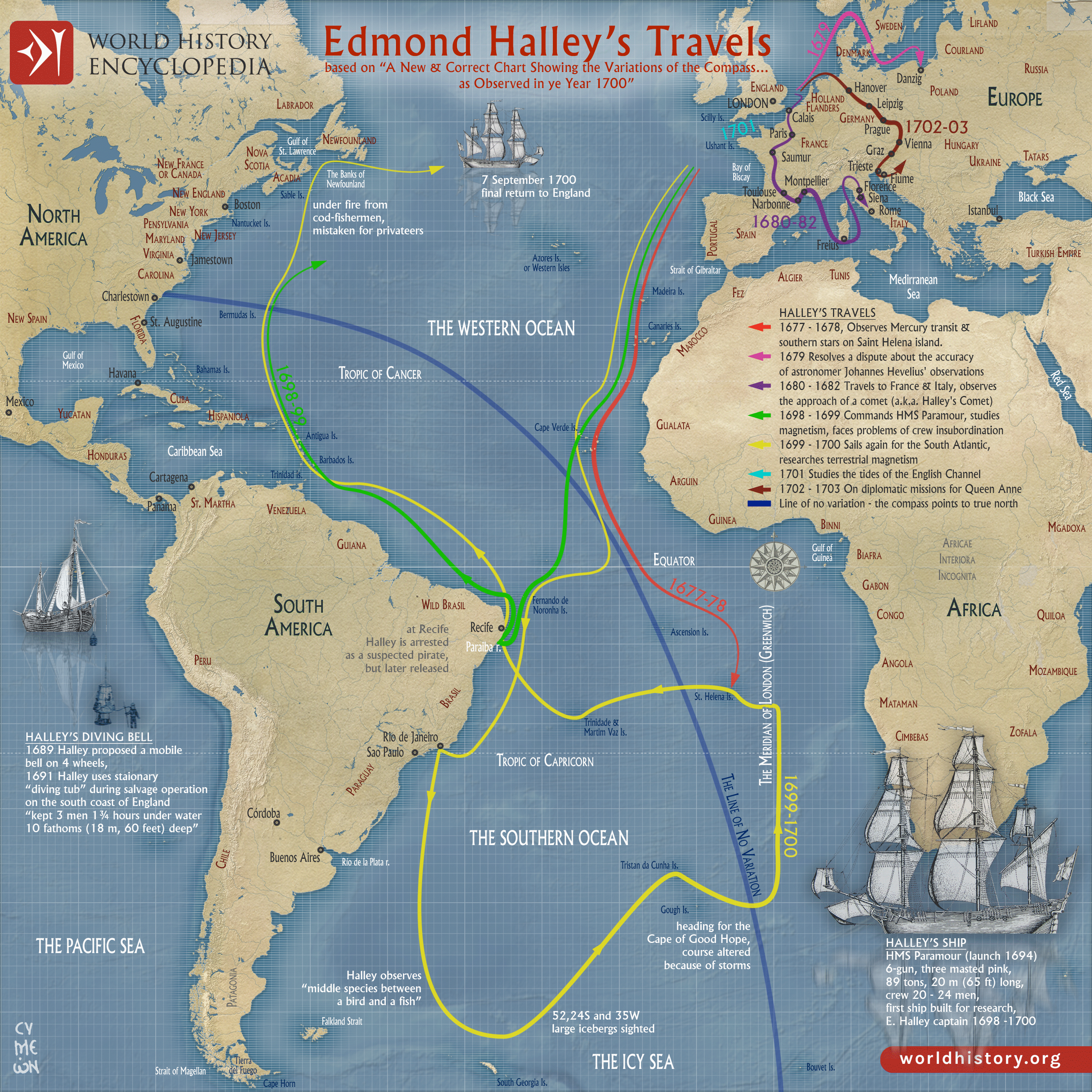 Netchev, S. (2023, November 21). Map of the Scientific Voyages of Edmond Halley (c.1676–1721). World History Encyclopedia. https://www.worldhistory.org/image/18164/map-of-the-scientific-voyages-of-edmond-halley-c16/